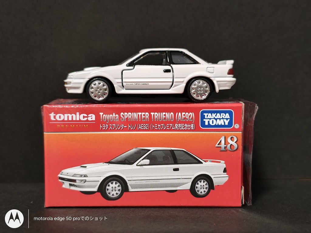 今回紹介するのは、トミカプレミアムの「トヨタ スプリンタートレノ AE92 トミカプレミアム発売記念仕様」です。(通常と二台買うのは厳しかった…)