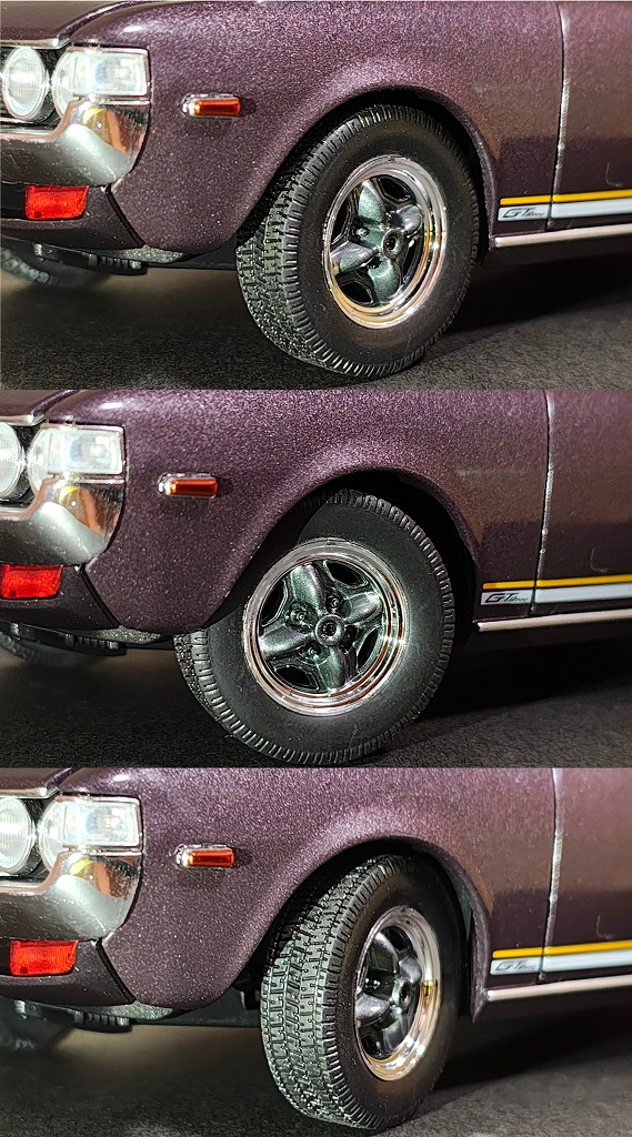 真正面と真後ろ ヘッドライトなどクリアパーツになっておりリアル。あとエンブレムの再現も細かくて良い。