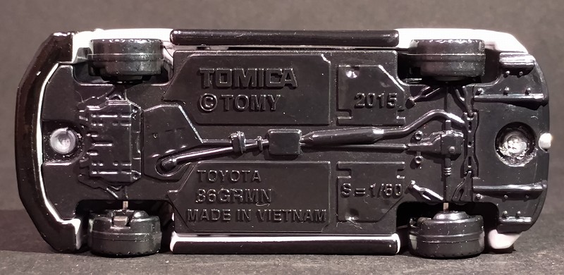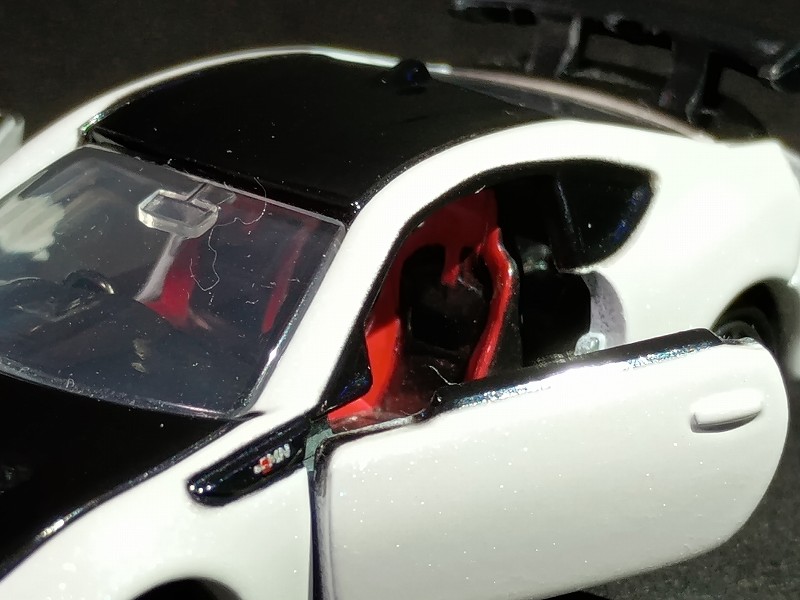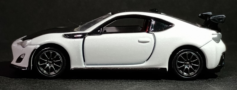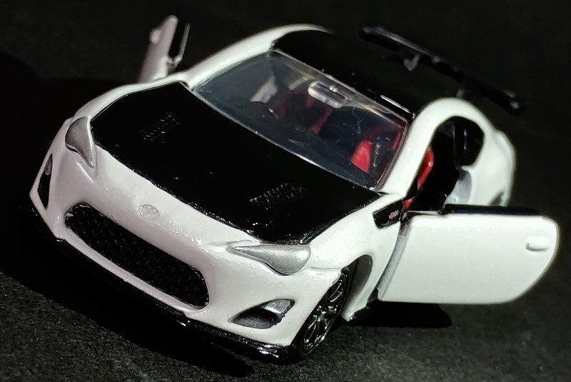 このトミカを今見てみると、トミカシリーズの86の金型を再利用してそうな感じがしました。例えばヘッドライトとか左右ドア開閉のところとか… でもカッコいいのでOK!そんなことは全然気になりません。
