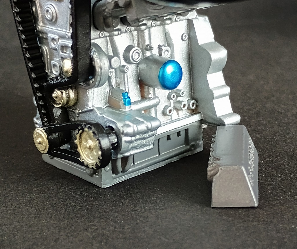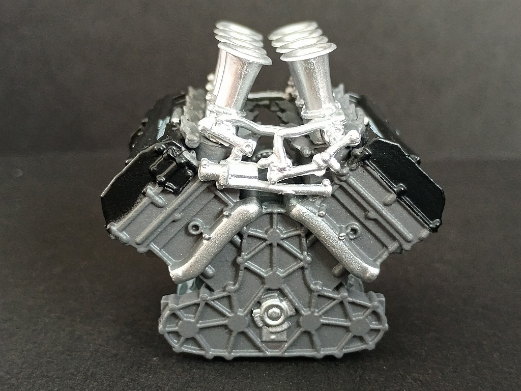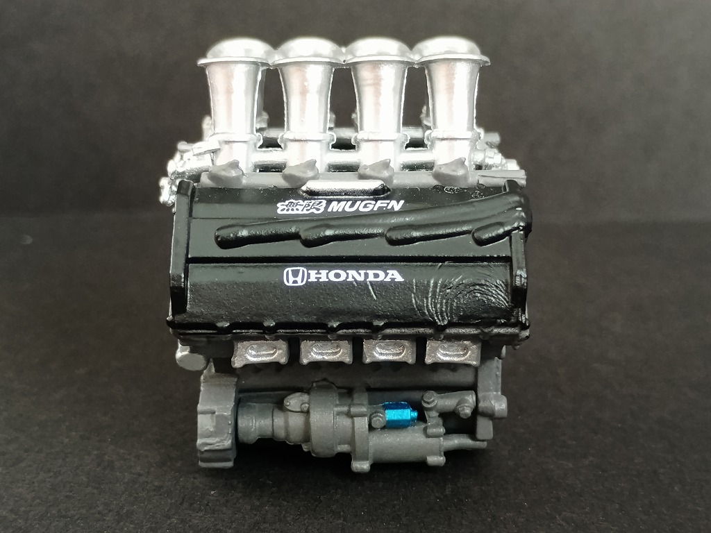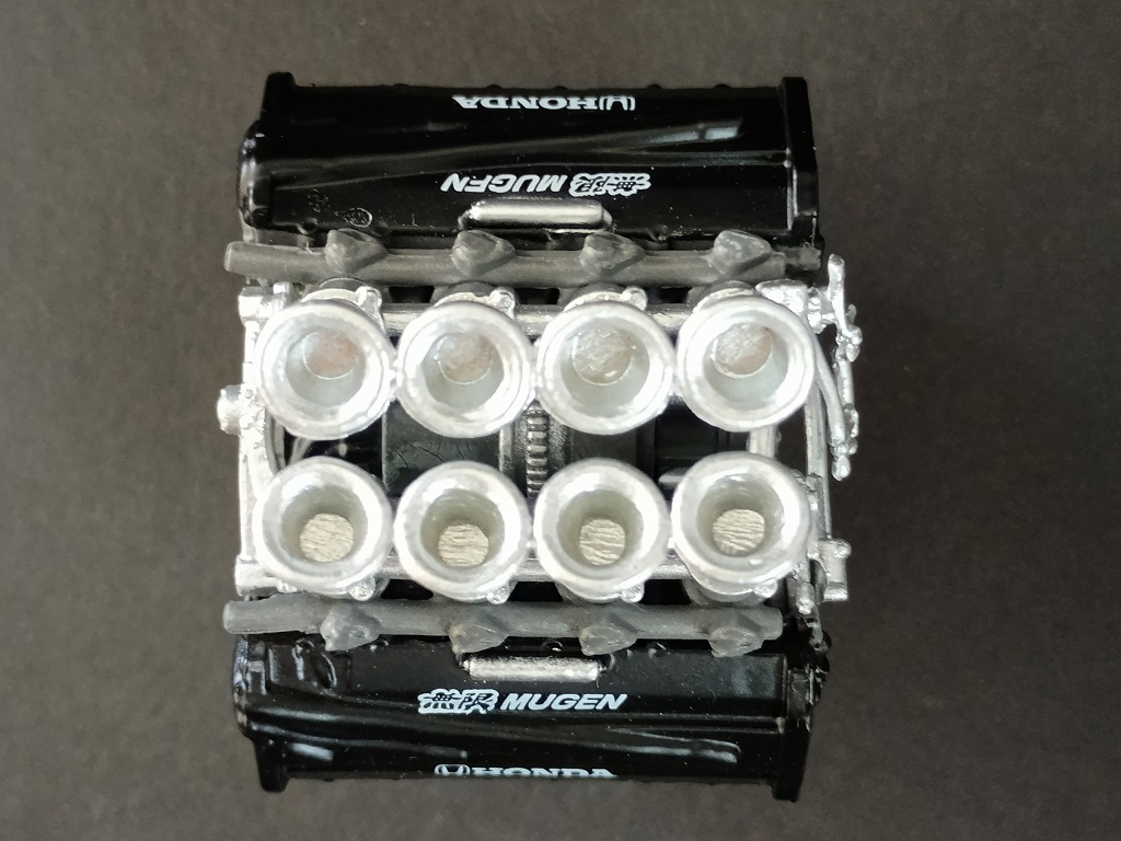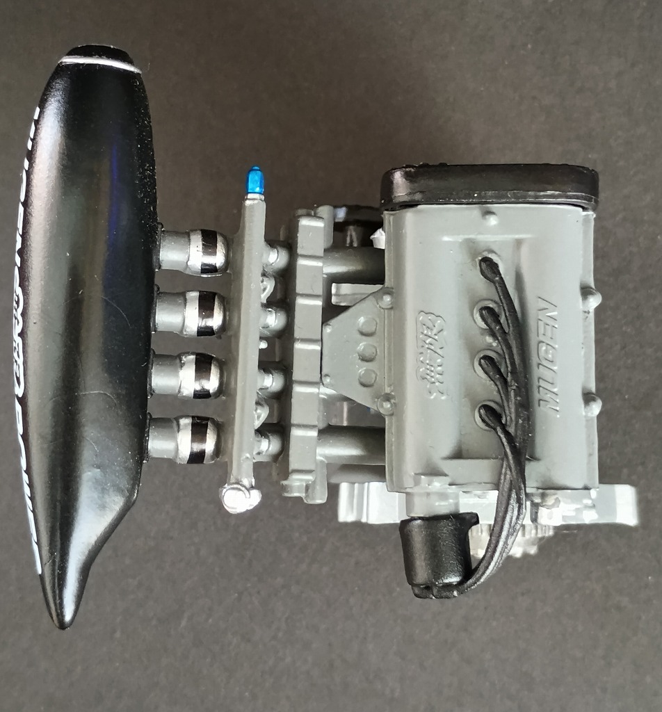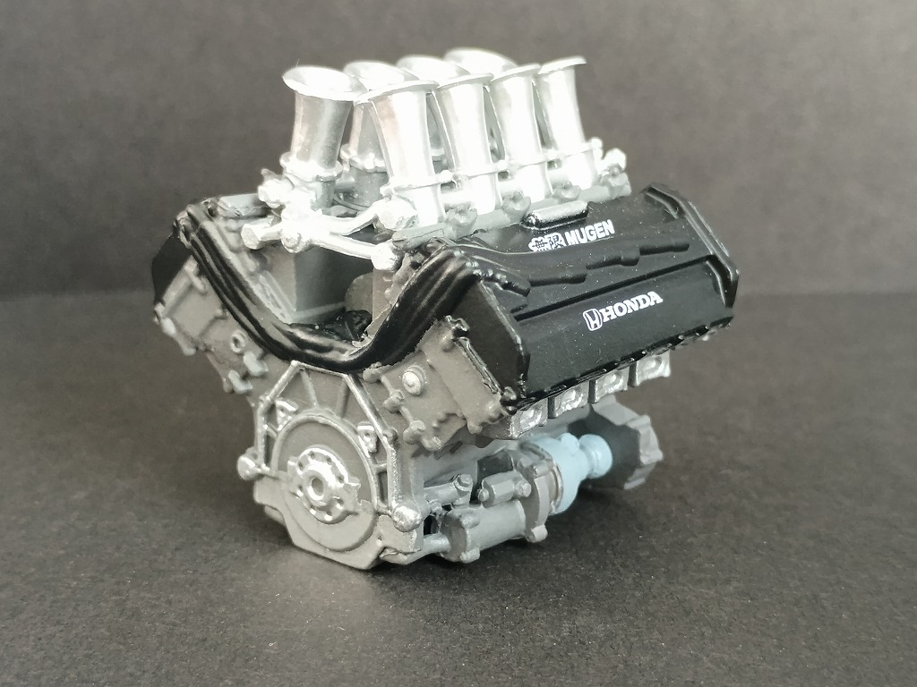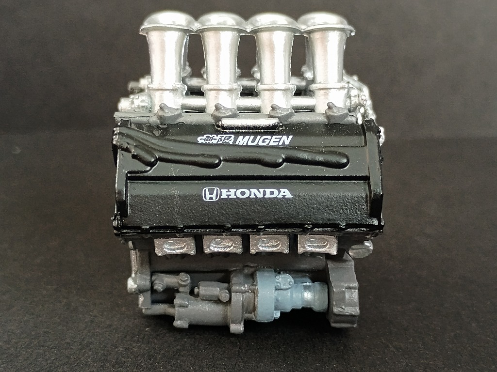 車好きとしては、こういうエンジン単体のミニチュアはなかなか面白いアイテムだと思います。ミニカーの横に飾っても雰囲気が良し、カーモデルの横に飾るも良しということで、ちょっとしたディスプレイとしても楽しめそうだと思いました。