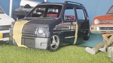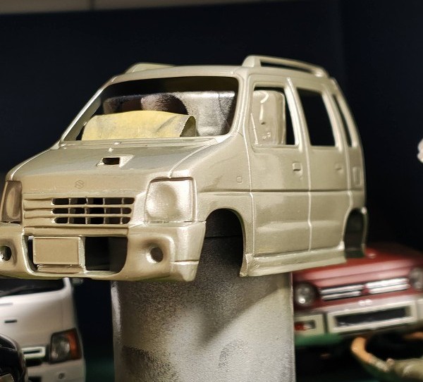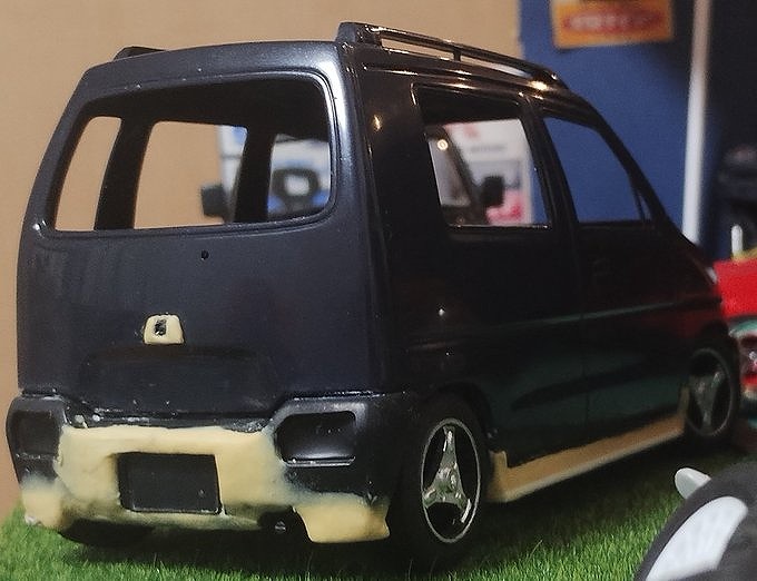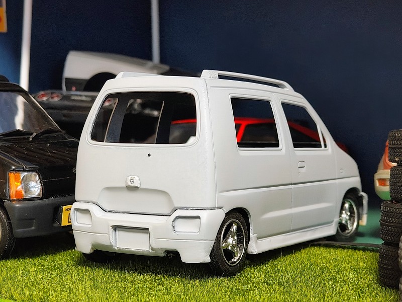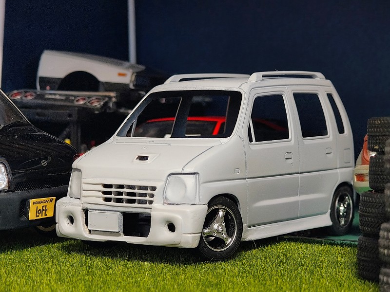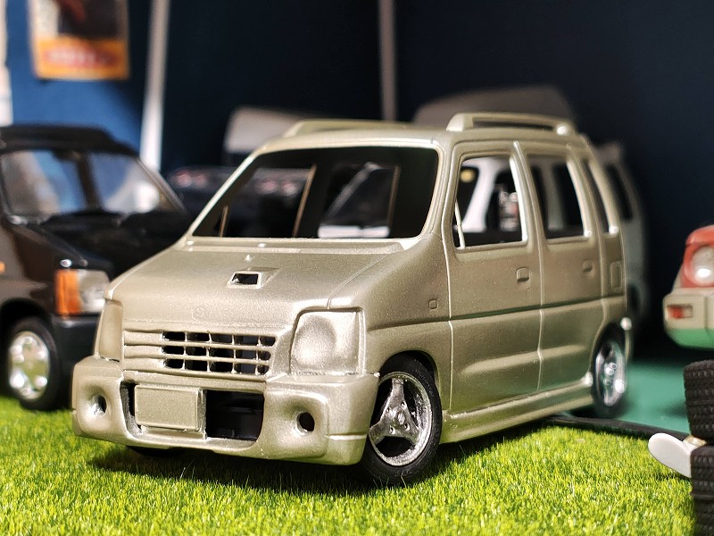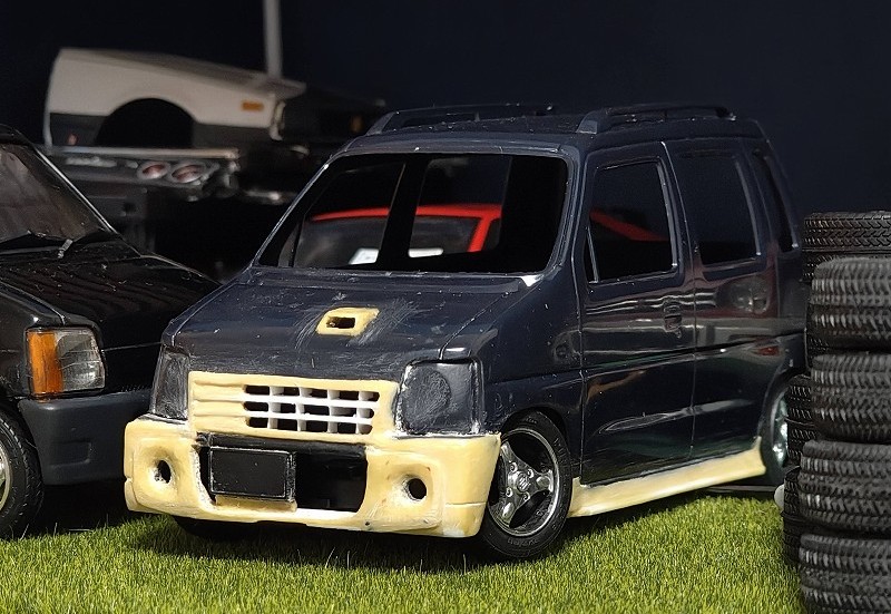 今回はフジミのワゴンR(CT21S)をベースにカスタム製作してみました。RXの標準バンパーをベースに後期型のエアロRSを再現してみました。