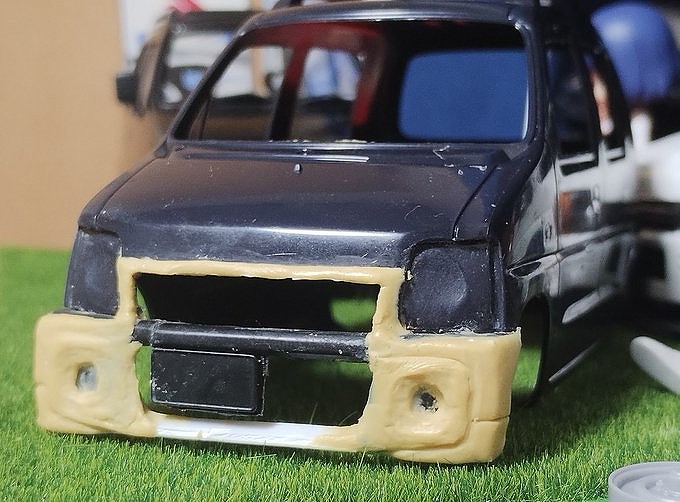 パテ盛り、バンパー改造