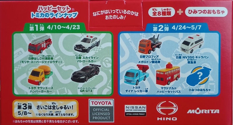 マクドナルド ハッピーセット トミカ 日産スカイライン(パトカー)とトヨタ タウンエーストラックの紹介レビュー